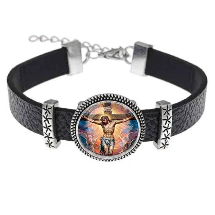 Кожаный браслет с изображением распятия под стеклянной линзой — это не только стильный аксессуар, но и символ веры. Размер регулируется, что позволяет удобно носить его на любой руке. Изготовлен из искусственной кожи и бижутерного сплава с покрытием под серебро, он станет прекрасным дополнением к любому образу. Диаметр изображения составляет 20 мм, а прочные материалы гарантируют долговечность изделия. Этот браслет может стать значимым подарком для близкого человека или элементом личного стиля.