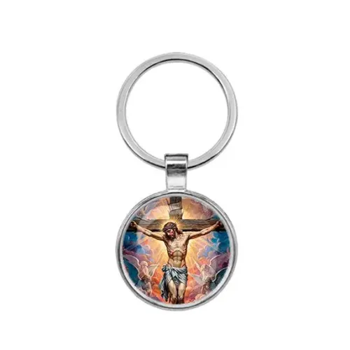 Круглый брелок, цвет серебро, Распятие C1149021