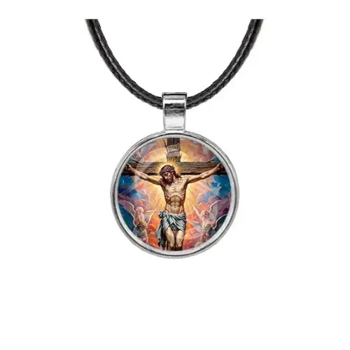 Кулон с изображением Распятия — это не только стильное украшение, но и символ веры. Он выполнен из бижутерного сплава с покрытием под серебро и дополнен стеклянной линзой, которая защищает изображение. Данный кулон станет прекрасным подарком для близкого человека или элементом личного стиля.