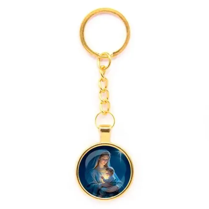 Круглый брелок в золотом цвете — это стильный аксессуар, который станет отличным подарком к Рождеству. Изготовленный из бижутерного сплава с покрытием под золото и стекла, он сочетает в себе элегантность и прочность. Размеры брелка с кольцом и цепочкой составляют 28х95 мм, что делает его удобным для ношения. Изображение защищено выпуклой стеклянной линзой, придающей дополнительную защиту и эффектный вид. Этот брелок отлично подойдет как для личного использования, так и в качестве праздничного подарка для близких.