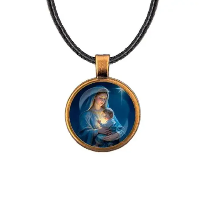 Этот стильный кулон в цвете бронзы станет прекрасным символом Рождества. Изготовленный из бижутерного сплава с покрытием под бронзу и стекла, он привносит в образ нотки волшебства и тепла. Диаметр кулона составляет 28 мм, а длина шнурка — 45 см, что делает его удобным для ношения. Застёжка типа лобстер обеспечивает надежность крепления, а изображение под защитой выпуклой стеклянной линзы придаёт изделию особую выразительность.