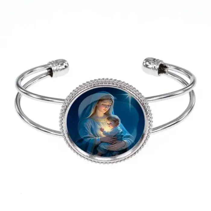 Металлический браслет с символикой Рождества станет прекрасным дополнением к любому образу. Изготовленный из бижутерного сплава и украшенный изображением диаметром 25 мм под выпуклой стеклянной линзой, он привносит в повседневность атмосферу праздника. Безразмерный дизайн позволяет носить его на любой руке, а покрытие под серебро придаёт элегантный вид. Этот аксессуар идеально подходит как для личного использования, так и в качестве подарка близким. В народе такие украшения ценятся за их способность создавать праздничное настроение и дарить радость.