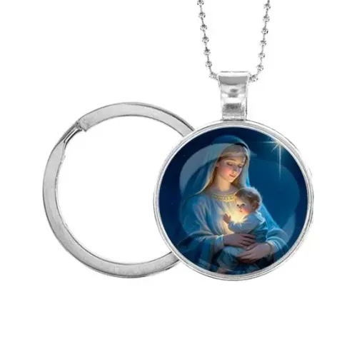 Кулон-брелок — стильный аксессуар, который станет прекрасным подарком на Рождество. Он выполнен из бижутерного сплава с покрытием под серебро и украшен стеклянной линзой, защищающей изображение. Этот универсальный предмет можно носить как кулон на цепочке длиной 49 см или использовать в качестве брелка благодаря удобному кольцу.