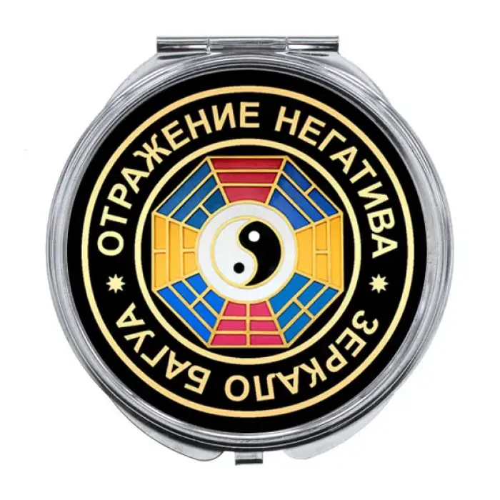 Складное зеркало для личного использования. Материал — металл и стекло, с полноцветным изображением.