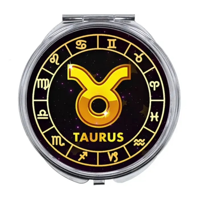 Складное зеркало с изображением знака зодиака Тельца станет отличным подарком для ценителей астрологии и символики. Это изделие не только функционально, но и красиво оформлено, что придаёт ему особую привлекательность.