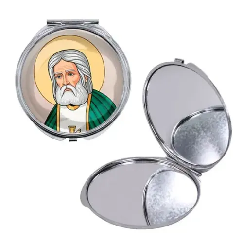 Круглое складное зеркало, цвет серебро, Серафим Саровский C1151016