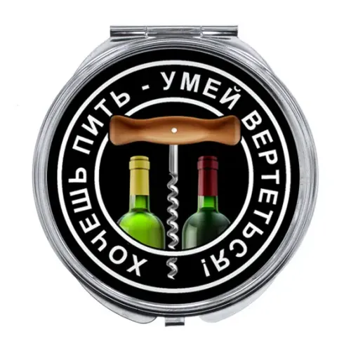 Складное зеркало с полноцветным изображением. Материалы: металл и стекло.
