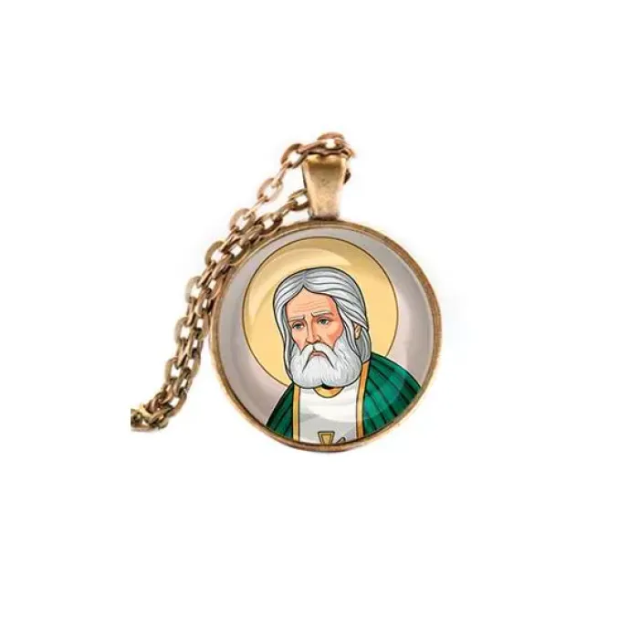 Кулон с изображением Серафима Саровского — это не только стильный аксессуар, но и символ духовности и защиты. Он выполнен из бижутерного сплава с покрытием под бронзу и дополнен стеклянной линзой, которая защищает изображение. Основные особенности: