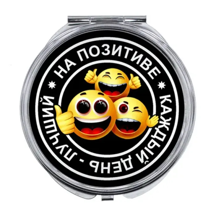 Складное зеркало На позитиве — это стильный и функциональный аксессуар, который приносит радость и положительные эмоции. Идеально подходит для использования в повседневной жизни или в качестве подарка.