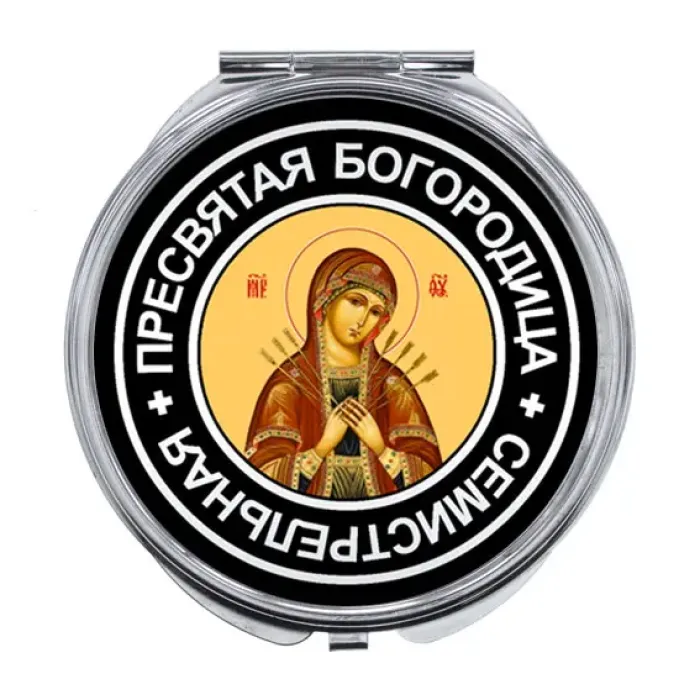 Складное зеркало с изображением Пресвятой Богородицы в семистрельном образе — это не только практичный аксессуар, но и символ веры и защиты. Оно станет прекрасным подарком для тех, кто ценит духовные традиции.