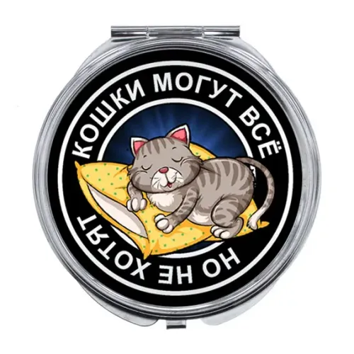 Складное зеркало с полноцветным изображением кошек. Изготовлено из металла и стекла.