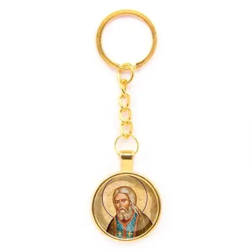 Круглый брелок, цвет золото, с цепочкой, Серафим Саровский C1152020