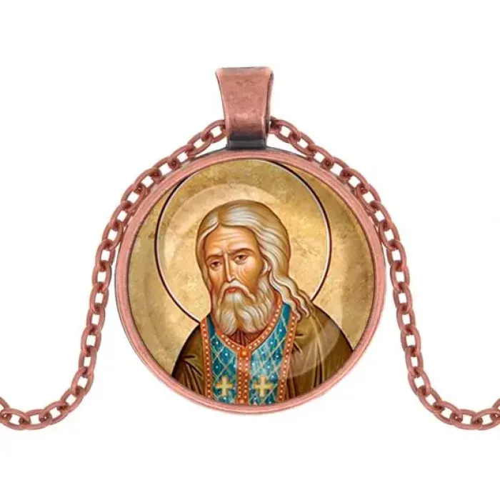 Кулон в цвете меди с изображением Серафима Саровского — это не только стильный аксессуар, но и символ духовной силы и защиты. Он станет прекрасным подарком для близких или дополнением к личной коллекции. Изготовленный из бижутерного сплава с покрытием под медь и стеклом, кулон обладает прочностью и элегантным внешним видом.