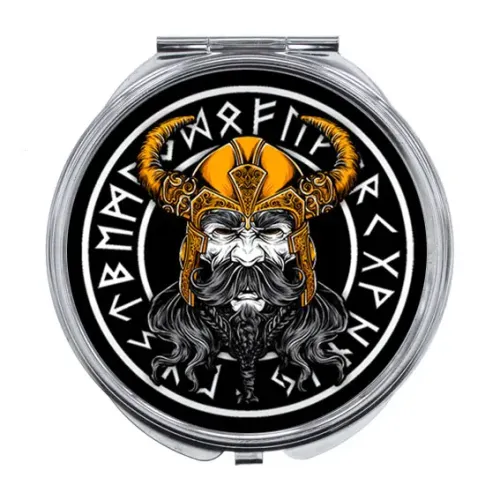 Складное зеркало для личного использования. Изготовлено из металла и стекла, имеет полноцветное изображение.