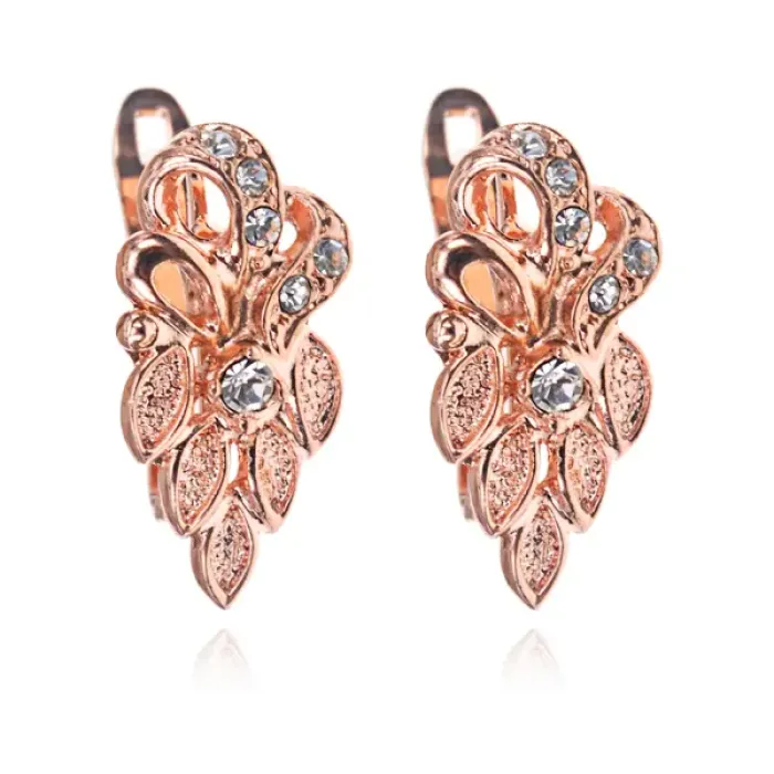 Серьги из бижутерного сплава с покрытием под золото и вставками из страз. Конструкция с английским замком.