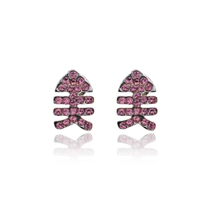 Серьги в форме рыбы из бижутерного сплава со вставками из страз.