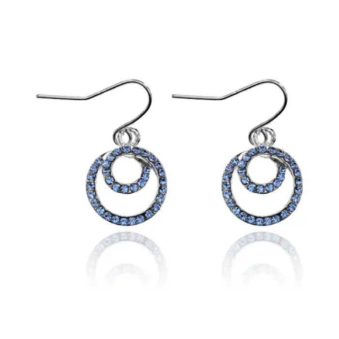 Серьги Два круга со стразами, цвет голубой UD259-b