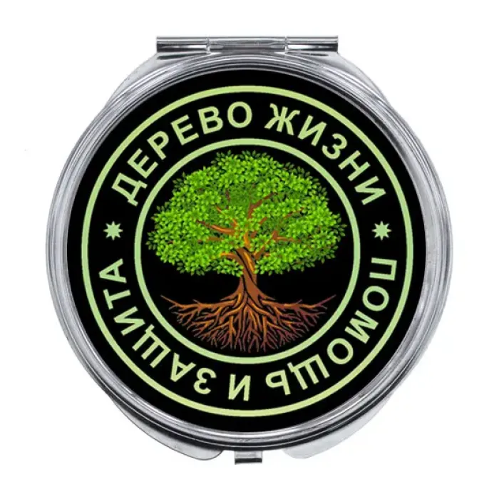 Складное зеркало с изображением «Дерево жизни» для личного использования. Материалы: металл и стекло.