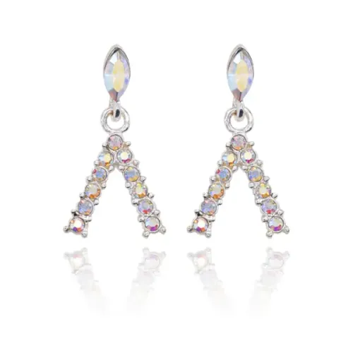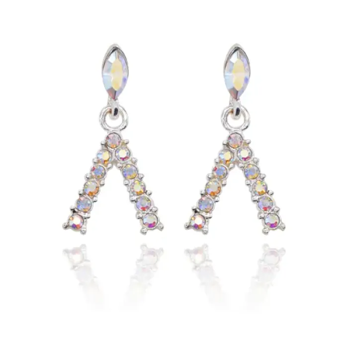 Серьги-гвоздики из бижутерного сплава с прозрачными стразами в форме буквы V.