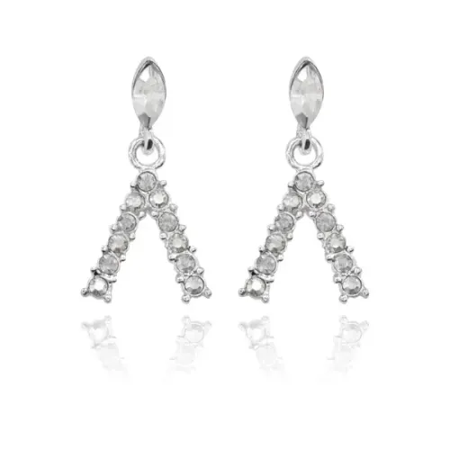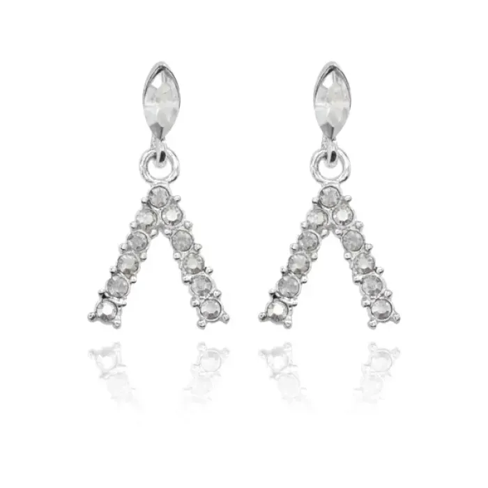 Серьги-гвоздики из бижутерного сплава в форме буквы V с желтыми стразами.