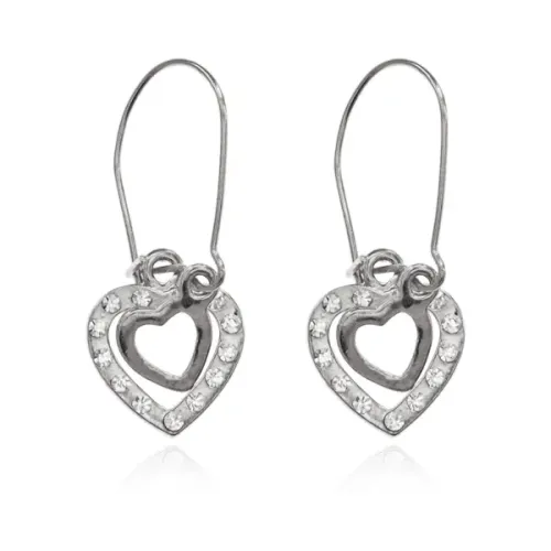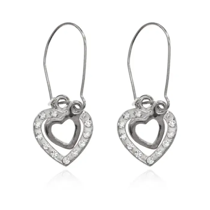 Серьги Два сердца со стразами, цвет серебряный UD262-s