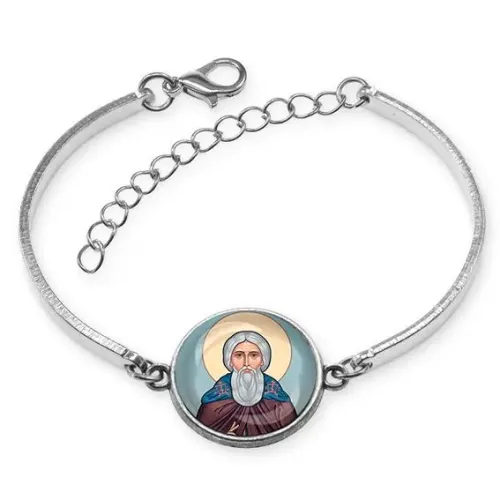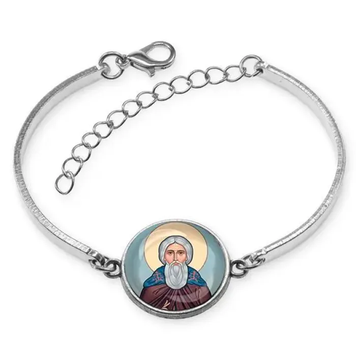 Браслет с изображением Сергия Радонежского — это не только стильный аксессуар, но и символ духовной силы и защиты. Изготовленный из бижутерного сплава с покрытием под серебро, он привносит в образ нотки утонченности и элегантности. Основные особенности: