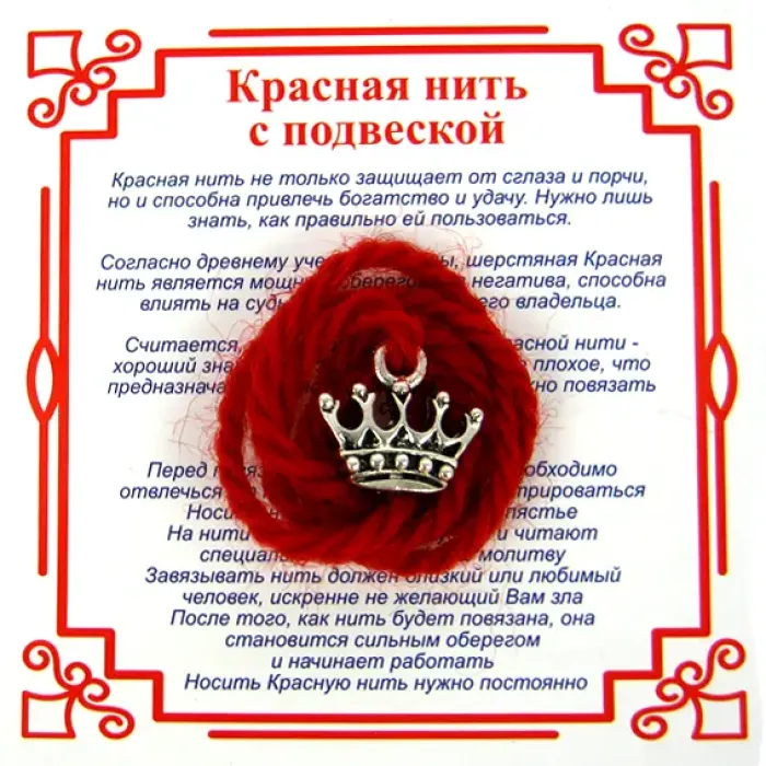 Красная нить на Красоту (Корона),цвет сереб, металл, шерсть AN0060