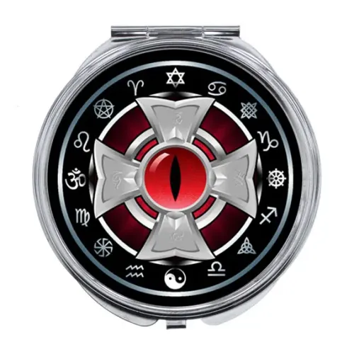 Складное зеркало с полноцветным изображением креста с глазом на металле.