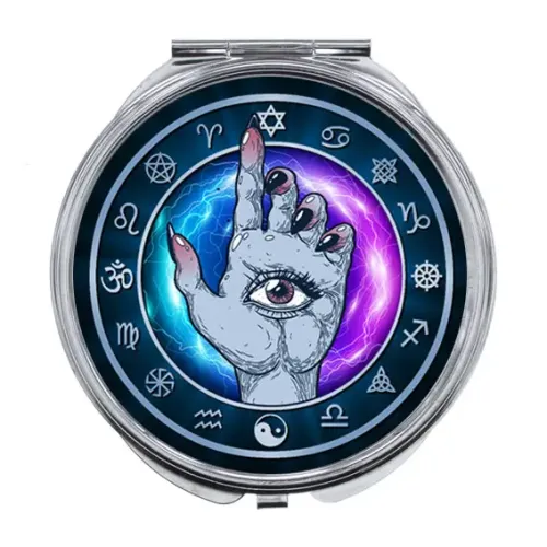 Складное зеркало «Рука с глазом» — сувенирный и практичный аксессуар из металла и стекла с полноцветным изображением.