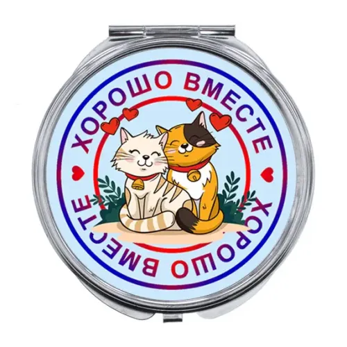 Складное зеркало "Хорошо вместе" — это стильный и практичный аксессуар, который станет отличным подарком или сувениром. Оно выполнено из качественных материалов: металл и стекло обеспечивают долговечность и надежность. Размер зеркала составляет 74х77х9 мм, что делает его удобным для ношения в сумке или кармане.