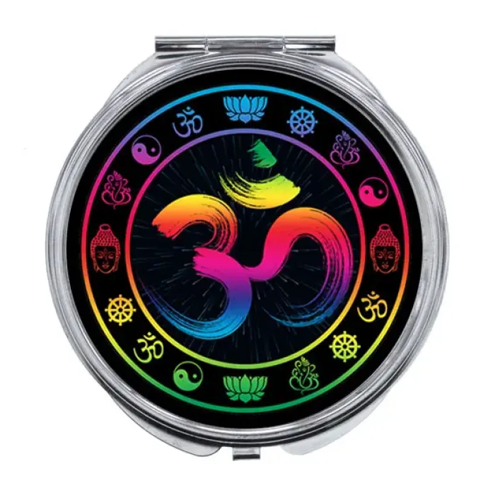 Складное зеркало для личного использования. Материал — металл и стекло, с полноцветным изображением.