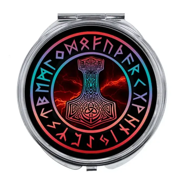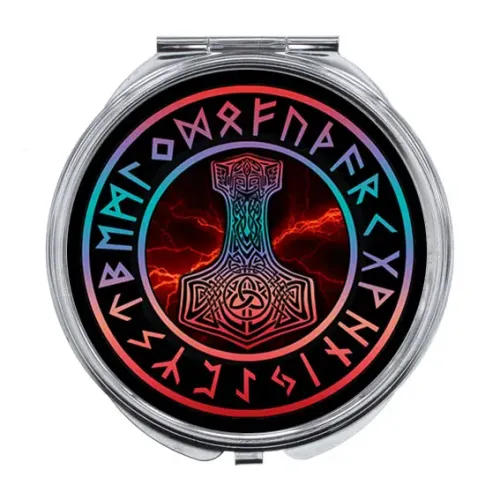 Складное зеркало с изображением Молота Тора. Материал: металл и стекло.