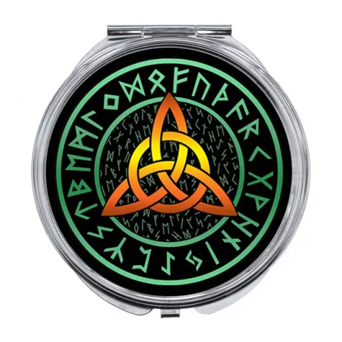 Складное зеркало с полноцветным изображением символа Трикветр.