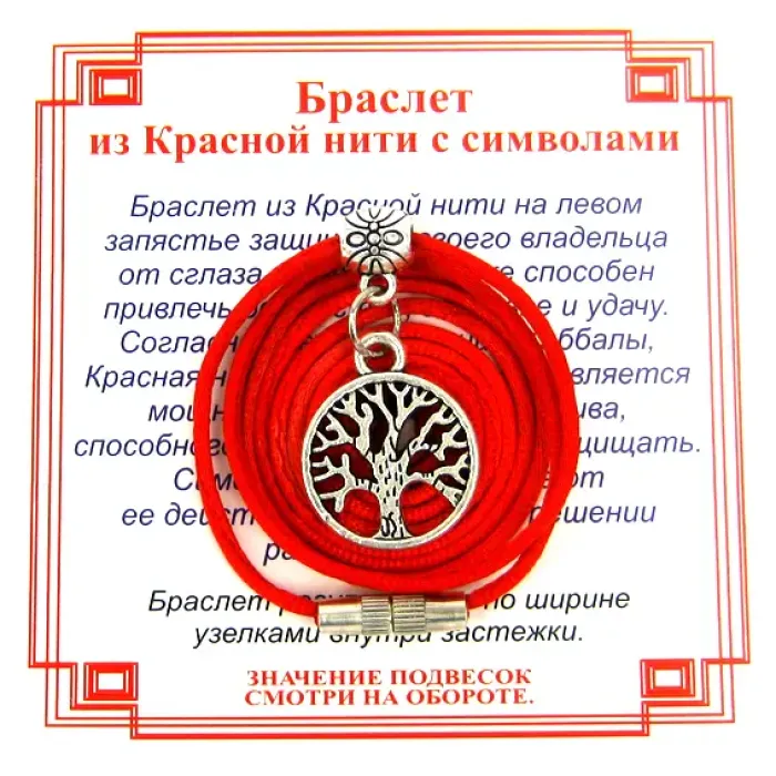 Браслет из красной нити на Развитие (Дерево Жизни),цвет сереб, металл, текстиль AB0040