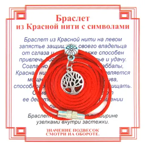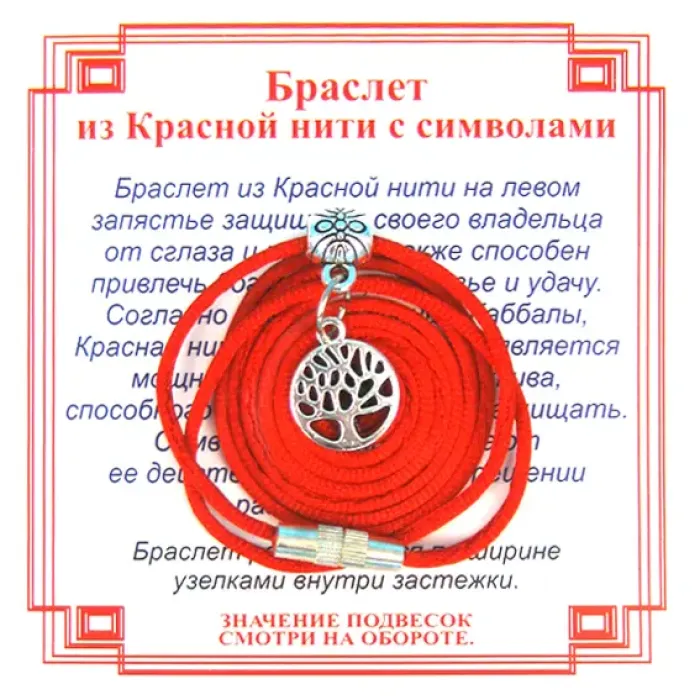 Браслет из красной нити на Развитие (Дерево Жизни),цвет сереб, металл, текстиль AB0041