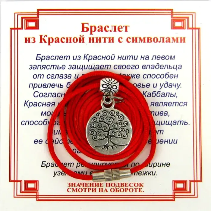Браслет из красной нити на Развитие (Дерево Жизни),цвет сереб, металл, текстиль AB0042