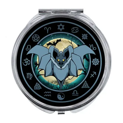 Складное зеркало с изображением летучей мыши. Материалы: металл и стекло.