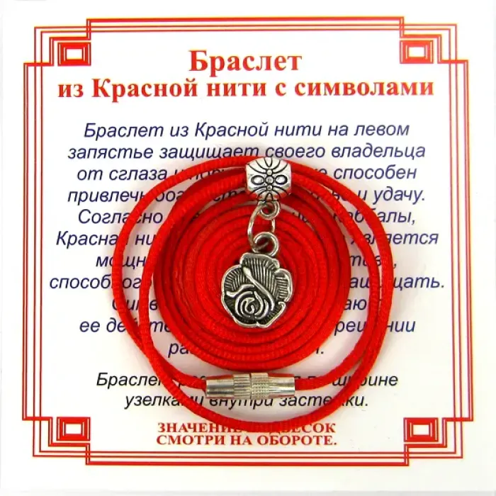 Браслет из красной нити на Любовь (Роза),цвет сереб, металл, текстиль AB0150