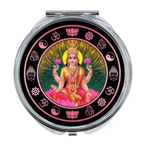 Складное зеркало для личного использования, изготовленное из металла и стекла, с полноцветным изображением.