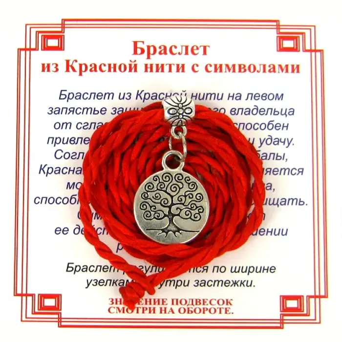Браслет красный витой на Развитие (Дерево Жизни),цвет сереб, металл, текстиль AV0042