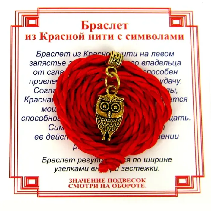 Браслет красный витой на Мудрость (Сова),цвет золот, металл, текстиль AV0580
