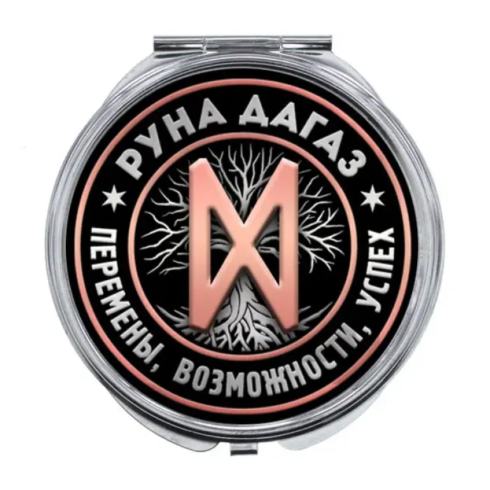 Складное зеркало Руна Дагаз — это стильный и практичный аксессуар, который не только удобно носить с собой, но и который обладает глубоким символическим значением. Изображение руны Дагаз на зеркале олицетворяет свет и новый день, что делает его отличным подарком для тех, кто стремится к позитивным переменам.