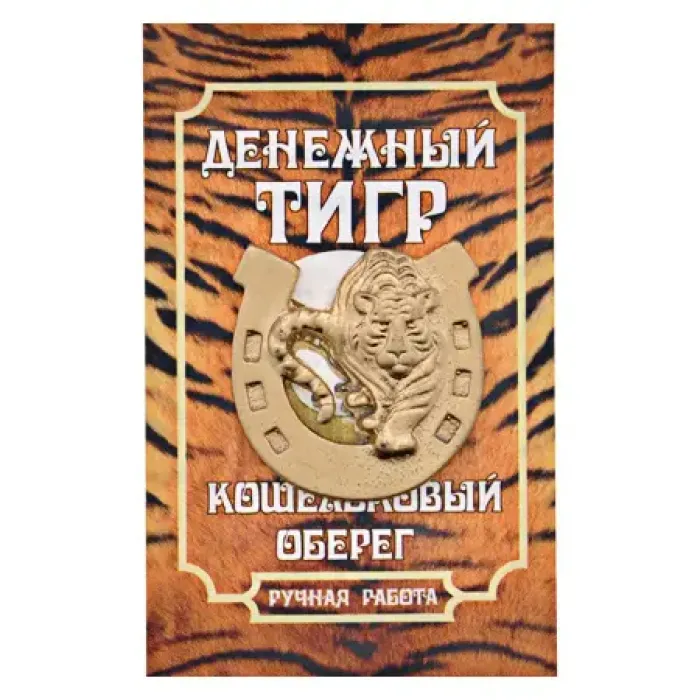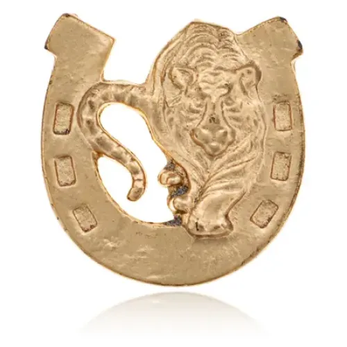 Кошельковый сувенир в виде тигра с подковой, выполненный из металла с золотым покрытием.