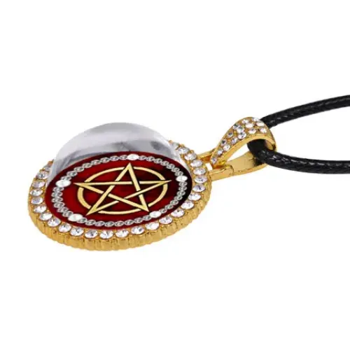 Амулет Пентаграмма — это стильный кулон, выполненный из бижутерного сплава с покрытием под жёлтое золото. Этот уникальный аксессуар инкрустирован качественными австрийскими стразами и защищён выпуклой стеклянной линзой толщиной 12 мм, что придаёт ему особую выразительность. В комплект входит шнурок с застёжкой, что делает его удобным для носки. Упаковка представлена в прозрачном полипропиленовом пакетике без подвеса, что позволяет сохранить амулет в идеальном состоянии до момента использования. Символика пентаграммы традиционно ассоциируется с защитой и гармонией.