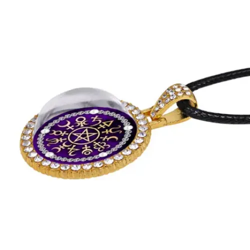 Амулет в виде планеты с пентаклем. Изготовлен из бижутерного сплава с покрытием под золото, инкрустирован стразами.