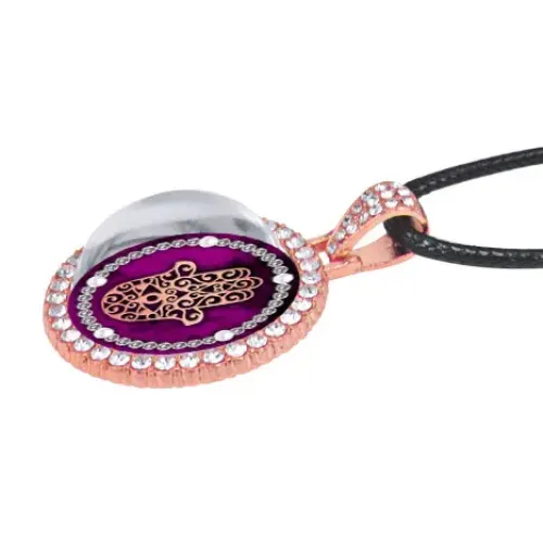 Амулет Хамса — это стильный кулон, который сочетает в себе красоту и символику. Он выполнен из бижутерного сплава с покрытием под розовое золото и инкрустирован качественными австрийскими стразами, что придаёт ему особый блеск и элегантность.