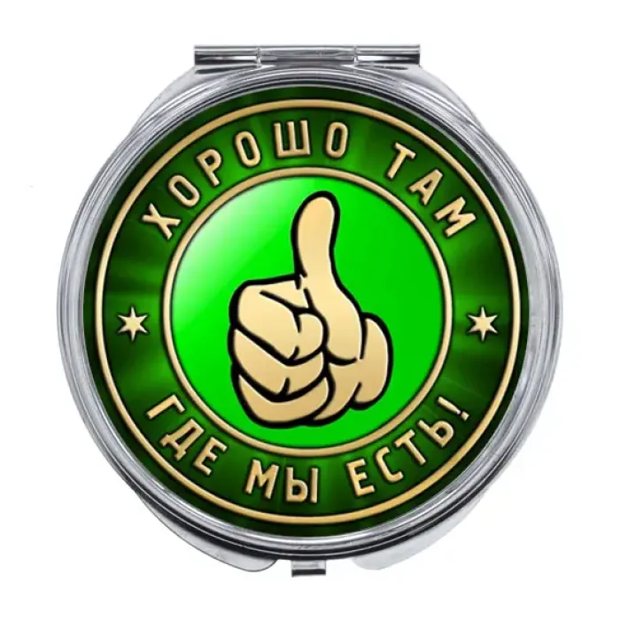 Складное зеркало «Хорошо там, где мы есть» — это не только практичный аксессуар, но и стильный элемент для создания настроения. Изготовлено из качественных материалов: металл и стекло обеспечивают долговечность и надежность. Размер зеркала составляет 74х77х9 мм, что делает его удобным для использования в любых условиях. Полноцветное изображение с высоким качеством печати на металле добавляет яркости и индивидуальности этому изделию. Идеально подходит как для личного пользования, так и в качестве оригинального подарка.