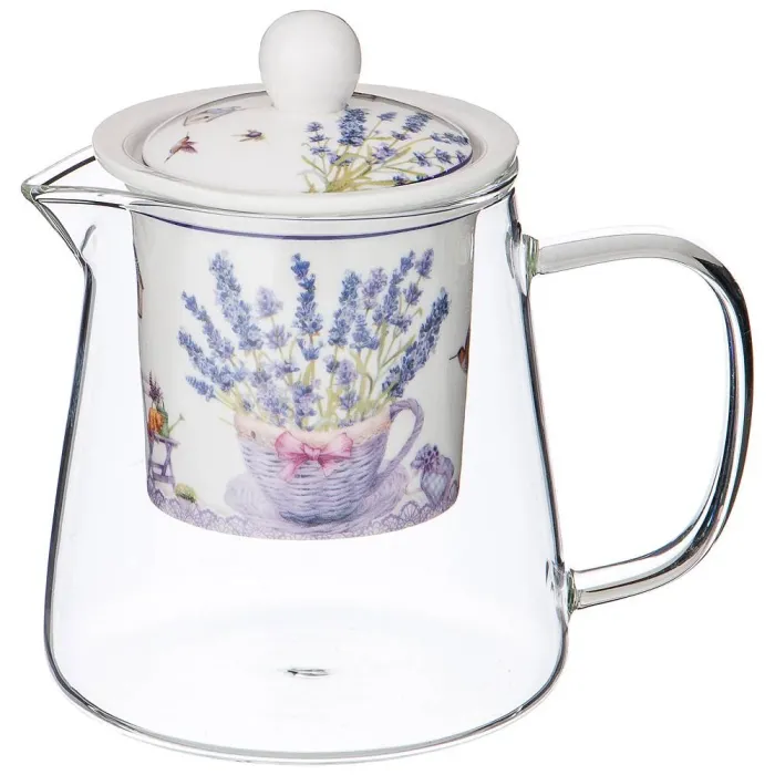 Чайник стеклянный с ситом прованс лаванда 400 мл - Lefard