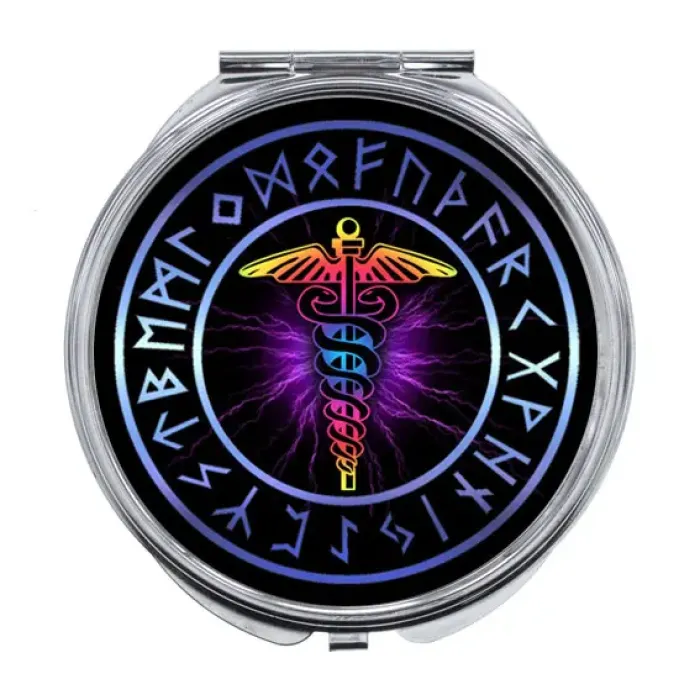 Складное зеркало с изображением кадуцея. Материалы: металл, стекло.