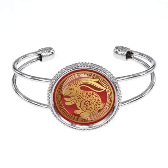 Браслет «Год Кролика» — это стильный аксессуар, который станет отличным подарком для ценителей символики восточного календаря. Он выполнен из бижутерного сплава с покрытием под серебро и украшен стеклянным изображением диаметром 25 мм, защищенным выпуклой линзой. Открытый дизайн делает браслет универсальным, подходящим для любого запястья. Упаковка в прозрачный пакет добавляет элегантности и удобства при дарении. Этот браслет традиционно ассоциируется с удачей и благополучием, что делает его особенно привлекательным в качестве подарка на праздник.